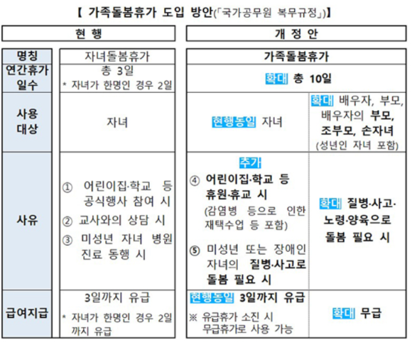 가족돌봄휴가(유급)과 가족돌봄휴가(무급)