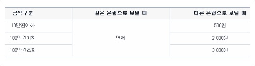 다른 은행으로 이체하는 경우 이체수수료가 500원~1,000 정도 발생합니다